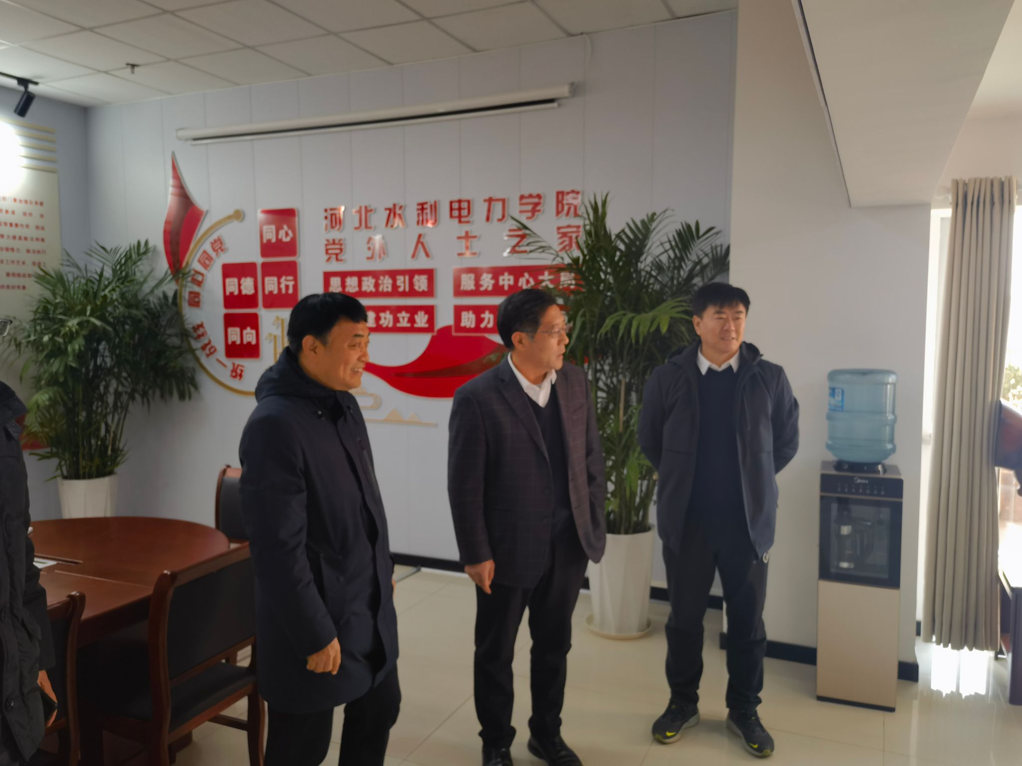 12月4日,党委书记张效松、副校长崔立功调研党外人士之家活动室建设情况,党委宣传部长、统战部长于书忠,党外知识分子联谊会会长、基础部主任郝海森陪同调研。在调研中,张书记和崔校长参观了我校民族团结进步工作成效展,详细了解各民主党派、无党派人士和党外知识分子“凝心铸魂强根基、团结奋进新征程”主题教育开展情况以及党外知识分子联谊会建设情况,并围绕党外人士之家活动室建设、学习教育培训等提出意见建议。张书记指出,...