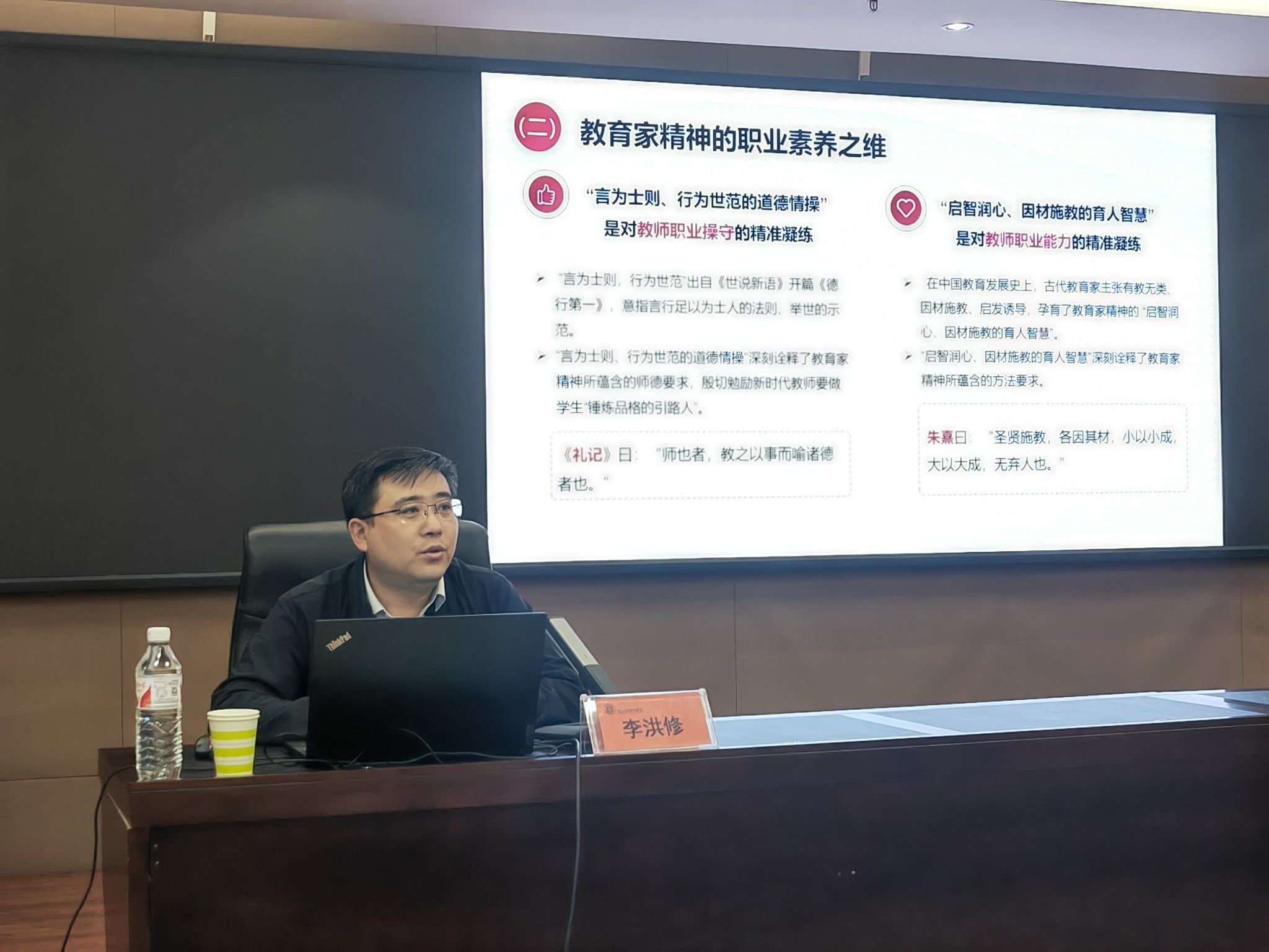 为进一步加强和推进师德师风建设,弘扬践行教育家精神,激励广大教师积极投身教育事业,争做新时代大先生。5月16日下午,我校在弘文守正楼9楼报告厅举办了主题为“弘扬教育家精神 做新时代的大先生”的师德讲堂活动,邀请天津师范大学李洪修教授作为主讲嘉宾。副校长崔立功出席并主持活动。李洪修教授从“如何理解教育家精神”“教育家精神对教师的要求”“教师如何践行教育家精神”三个方面,结合当代教育家的育人实践,深刻阐释了弘扬教育家精神的时代价值,...