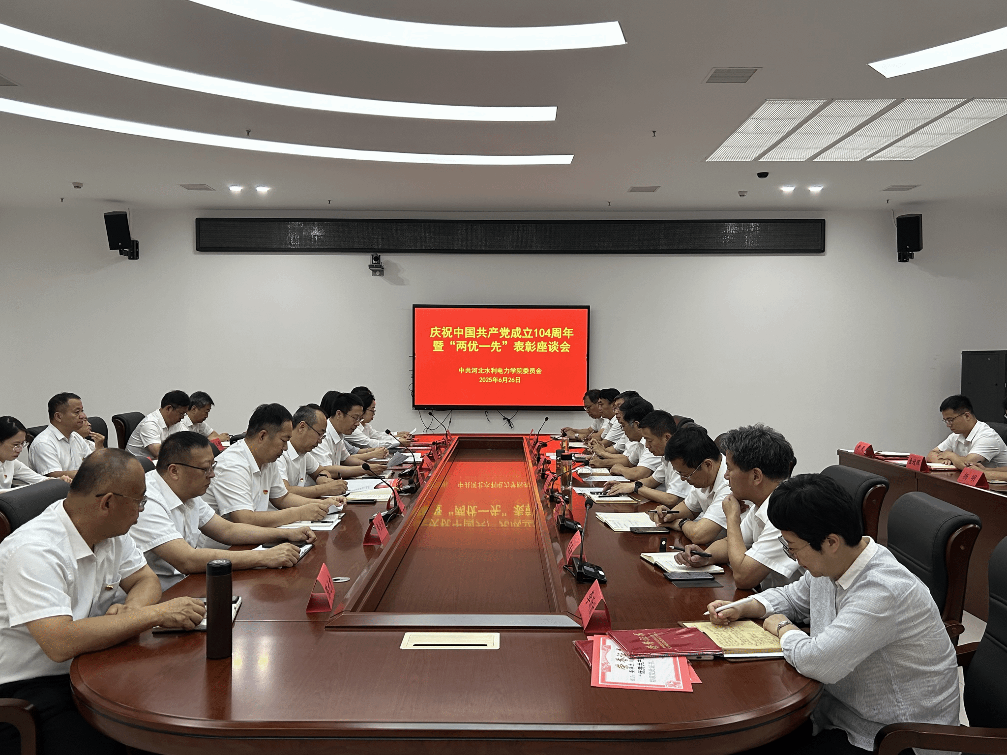为庆祝中国共产党成立104周年,表彰先进典型,凝聚奋进力量,6月26日下午,我校召开庆祝中国共产党成立104周年暨“两优一先”表彰座谈会。学校党委书记张效松、副校长于振海出席会议。学校党委主要部门负责同志、各二级党组织书记和受表彰的先进集体和先进个人代表参加会议。会议由学校党委副书记、校长王滨主持。于振海宣读了《中共米兰在线手机版(大中国区)委员会关于2025年优秀共产党员、优秀党务工作者和先进基层党组织的表彰决定》,对丁建川等70名优秀共产党员、...