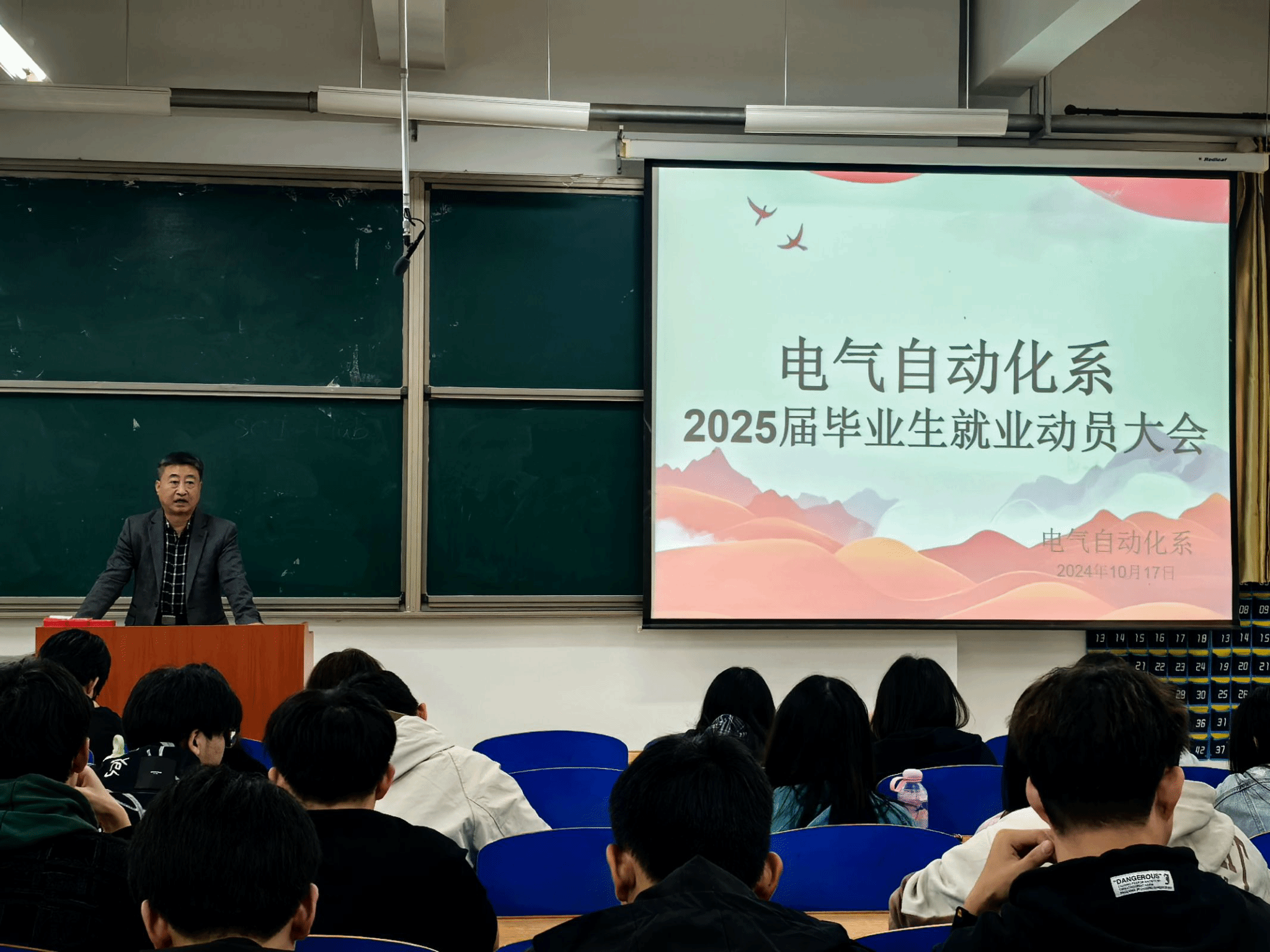 为帮助2025届毕业生了解就业形势、提高就业积极性、端正就业观念,10月17日,电气自动化系召开2025届毕业生就业动员大会,2025届毕业生代表参加会议,电气自动化系党总支书记葛洪伟、系主任唐勇出席本次会议。会议中,唐勇详细阐述了求职过程中可能会遇见的各种问题,对当前的就业形势进行了深入的剖析,使同学们清晰地认识到就业形势的复杂性和严峻性。他希望同学们主动将个人“小我”融入到祖国的“大我”、人民的“大我”之中,转变就业观念、...