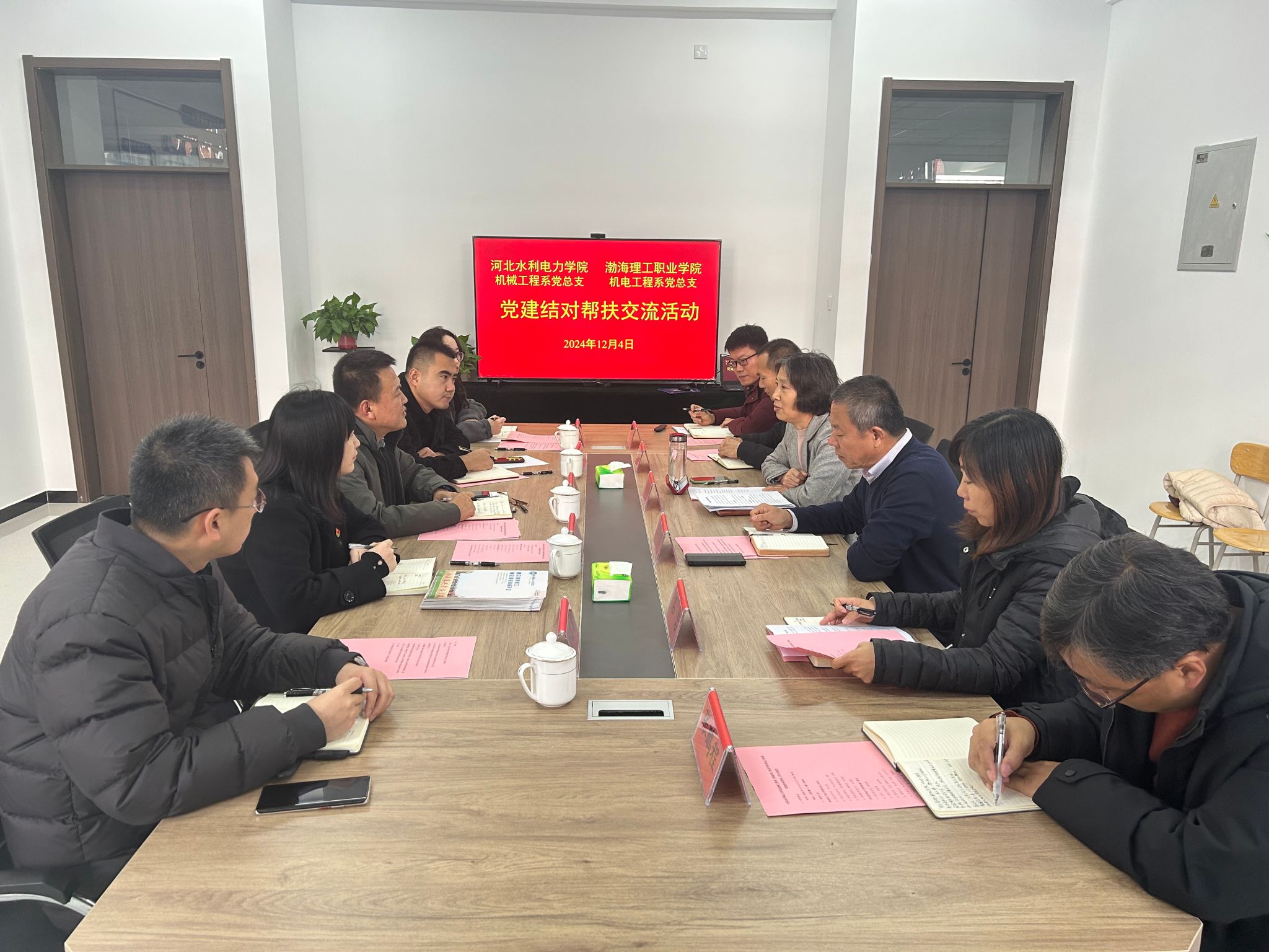 为深入贯彻省委教育工委党建结对帮扶工作相关要求,推进落实《米兰在线手机版(大中国区)党委与渤海理工职业学院党委党建结对帮扶年度工作计划》,12月4日,机械工程系党总支在求是楼B204与渤海理工职业学院机电工程系党总支开展党建结对帮扶活动,两系党总支书记、系党总支委员、党支部书记、骨干教师代表参加活动。机械工程系党总支书记荆秀萍对渤海理工职业学院机电工程系党总支书记李文涛一行的到来表示热烈欢迎,并以“围绕中心抓党建,...