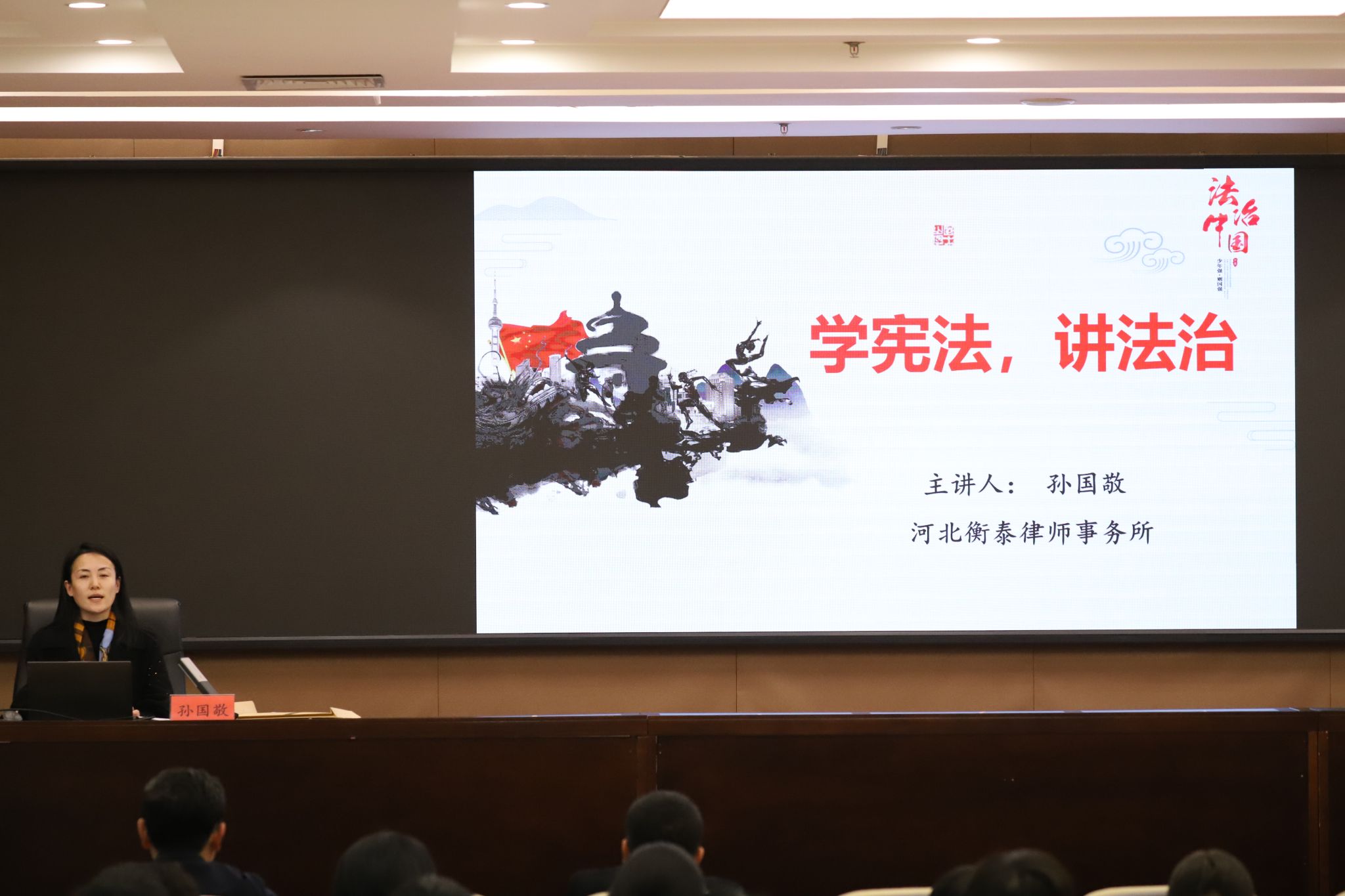 为认真学习贯彻习近平法治思想,深入贯彻落实党的二十大、二十届三中全会和全国教育大会精神,加强宪法法治宣传教育,推动广大师生深入学习宣传宪法、弘扬宪法精神,维护宪法权威,12月4日下午,我校以国家第十一个宪法宣传日为契机,邀请河北衡泰律师事务所孙国敬律师在弘文守正楼九楼报告厅为师生作《宪法》专题教育讲座,讲座由党政办公室副主任庞进主持,200余名师生参加。孙国敬的讲解内容丰富、深入浅出,涉及宪法概念、宪法制定与修正、...