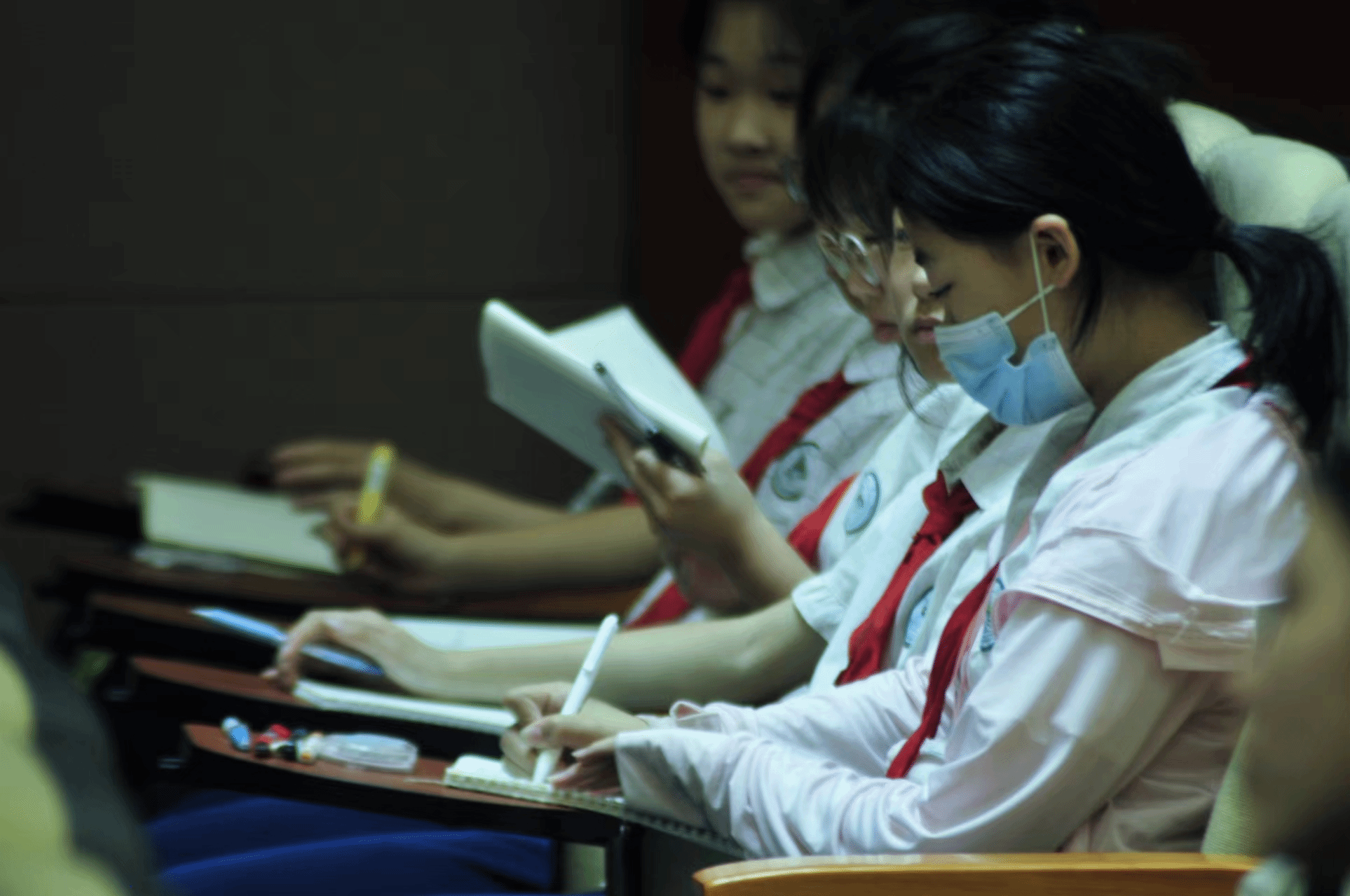 讲座结束后,上海路小学学生代表孙雨洁和我校学生代表舒雪倩上台为国连杰教授献花,表达了对他的敬意和感谢。