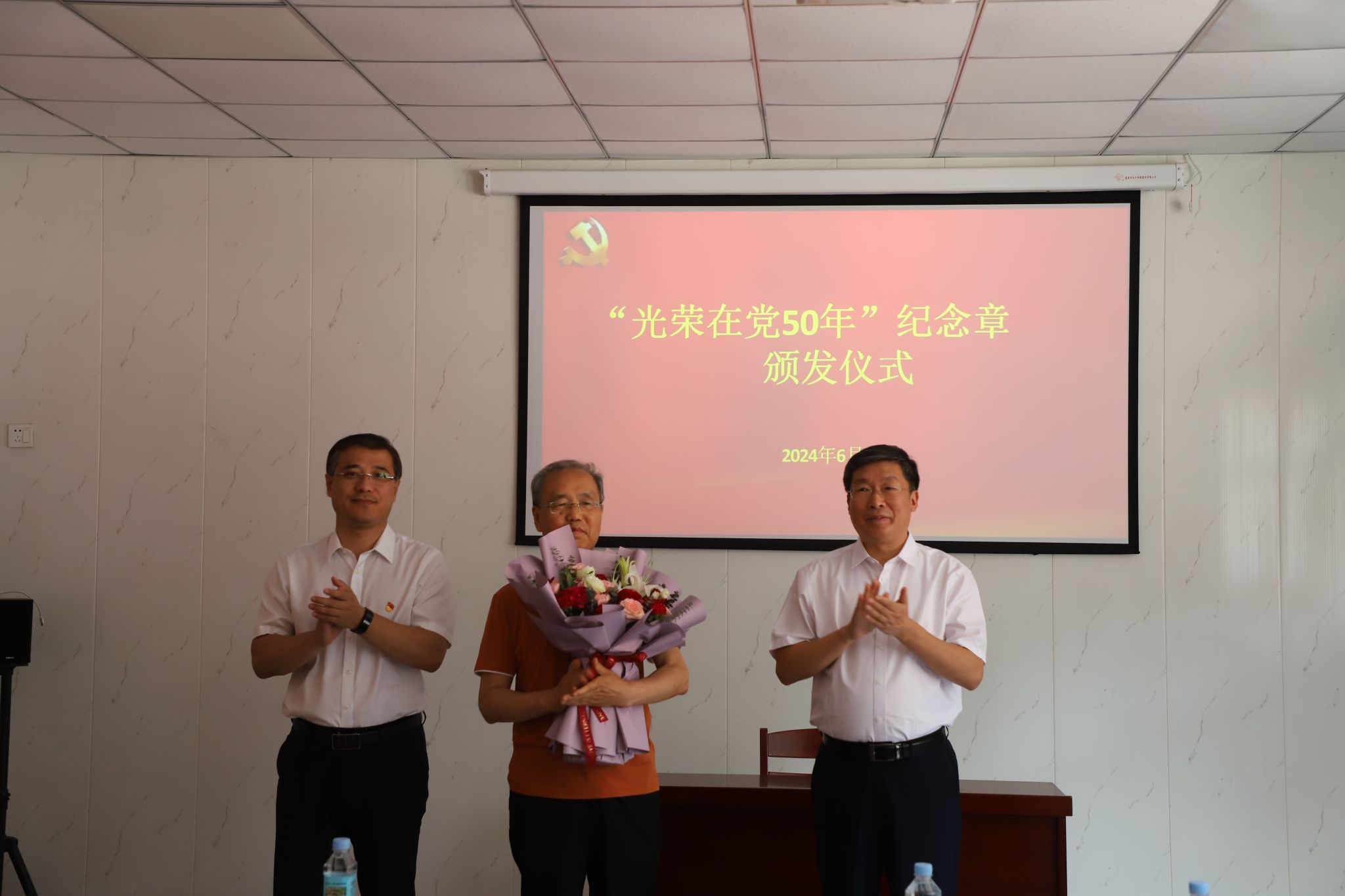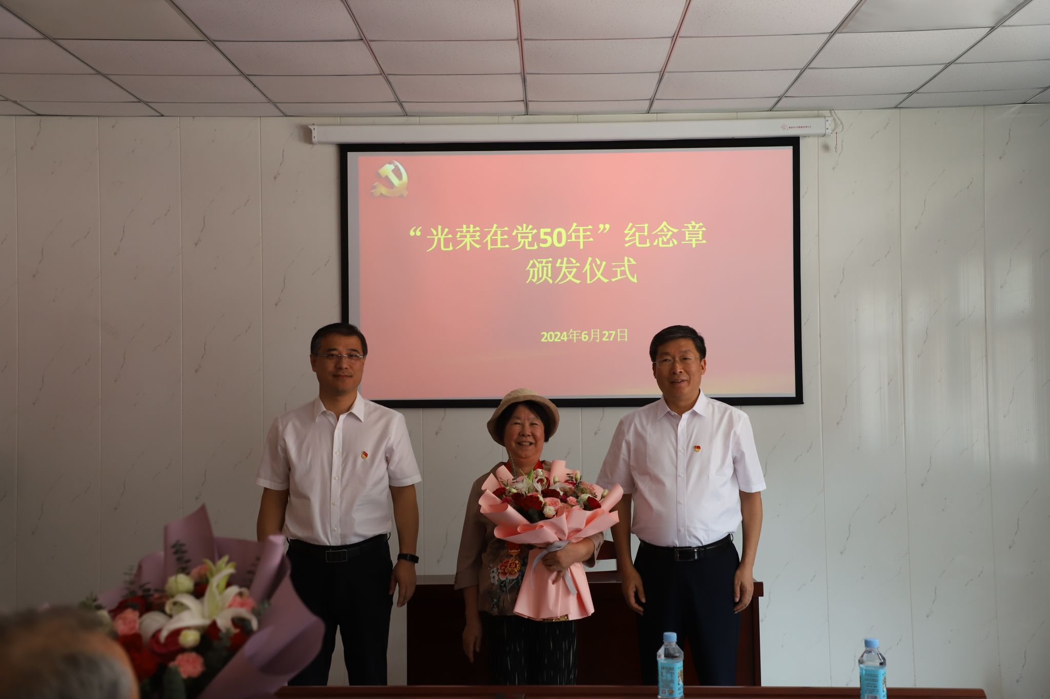 6月27日,在中国共产党成立103周年即将到来之际,我校在离退休党员活动室举办“光荣在党50年”纪念章颁发仪式,副校长于振海、副校长杨凯出席仪式。仪式由离退休党总支书记杨凤阁主持。