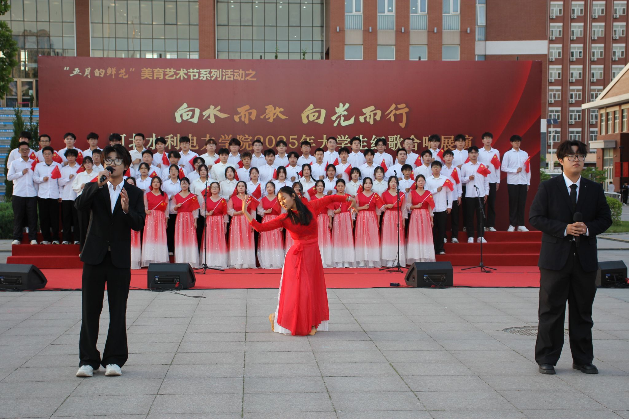 机械工程系的同学们以铿锵有力的歌声演绎了《保卫黄河》,展现了中华儿女的坚毅与不屈,为现场观众带来了强烈的视觉冲击与心灵震撼。我校退休教职工合唱团演唱的《革命人永远是年轻》,用深情的歌声传递了革命精神的永恒与传承,让现场观众仿佛穿越时空,亲身感受流金岁月铭刻的时代精神。计算机系的同学们以代码编织梦想,用歌声传递忠诚,一曲《学习雷锋好榜样》唱出了新时代青年的责任与担当,弘扬了雷锋精神。水利工程系的同学们带来了《我们走在大路上》,以歌声表达了对祖国的热爱与对未来的憧憬,展现了治水兴邦的青春蓝图。电力工程系的同学们用深情的歌声演绎了《我的中国心》,表达了海外游子对祖国的深情厚谊与坚定信念,激起了现场观众的强烈共鸣。