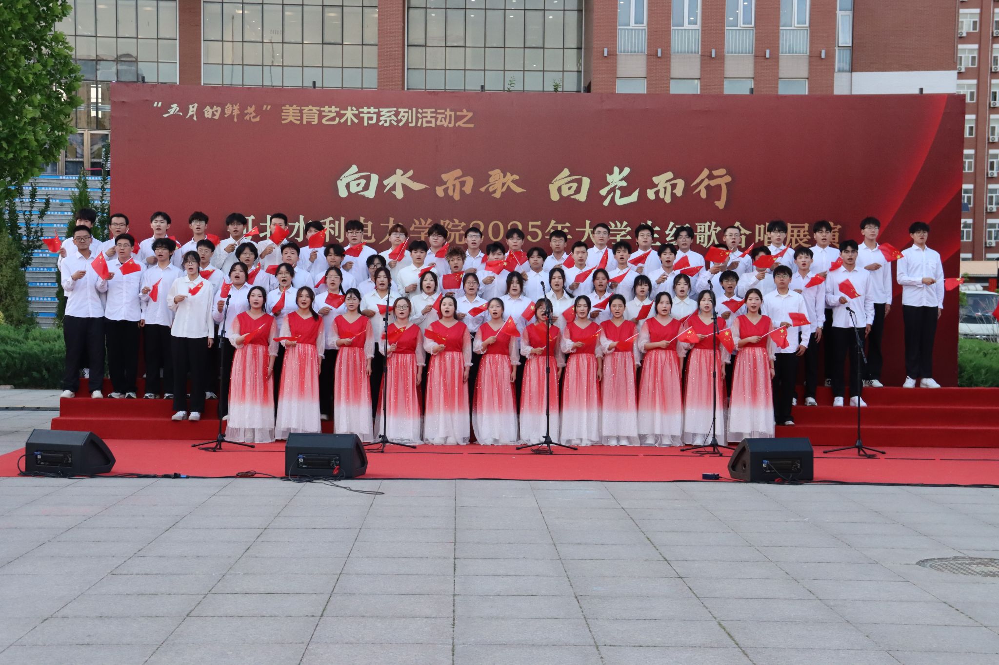 五月的校园,歌声嘹亮。青春的舞台,激情飞扬。5月15日下午,我校石材广场上红旗招展、歌声如潮,“五月的鲜花”美育艺术节系列活动之“向水而歌 向光而行”米兰在线手机版(大中国区)2025年大学生红歌展演在此举行。校党委书记张效松,党委副书记、校长王滨,副校长于振海,副校长杨凯,纪委书记鲁增秋出席活动。
