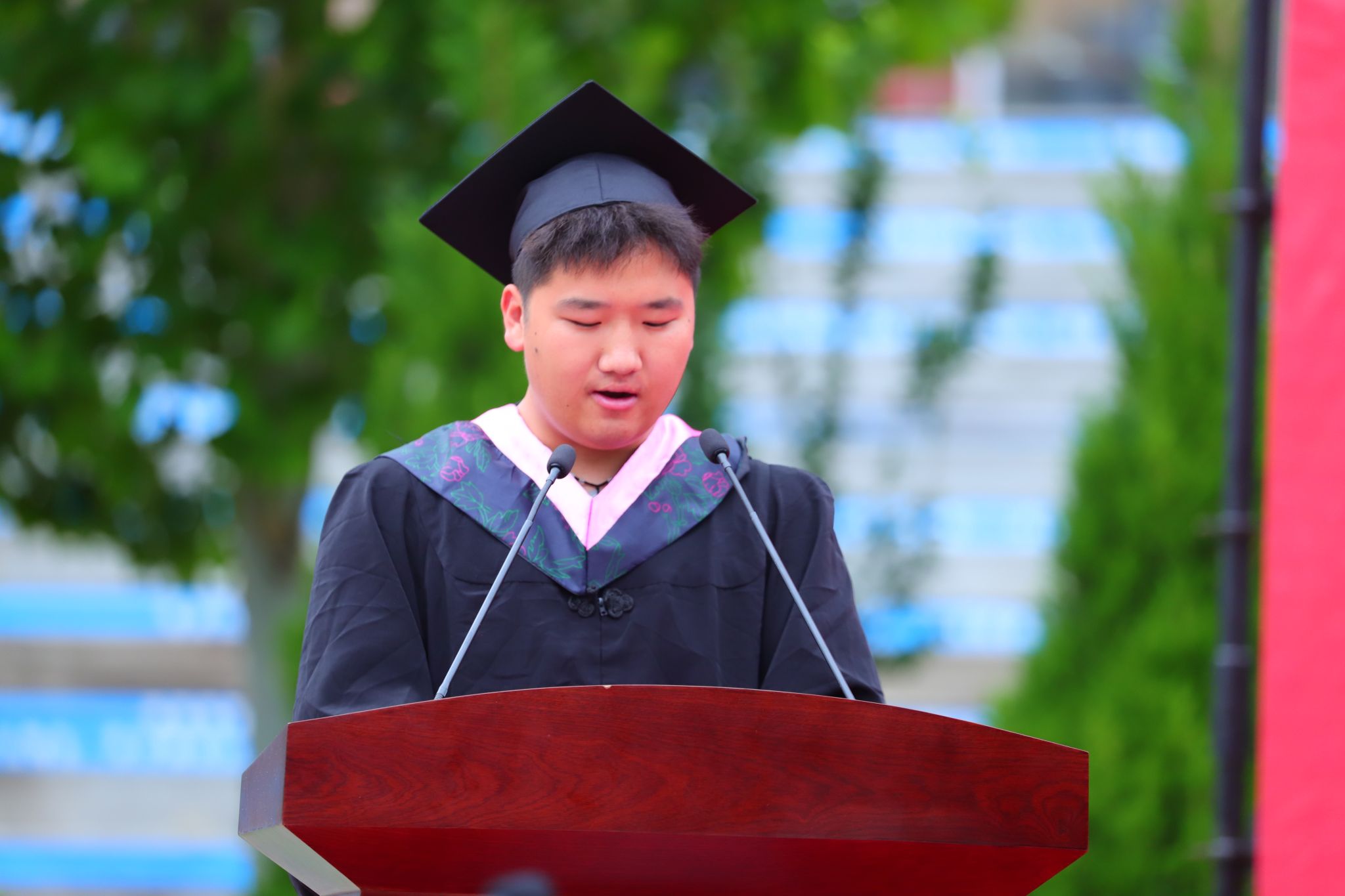 经济贸易系跨境电子商务202101班林天赐代表全体毕业生发言,分享了在校期间的成长与感悟,表达了对母校的眷恋、对师长的感恩以及对未来的憧憬;土木工程系土木工程202401班楚泽衡代表全体在校生送上诚挚祝福,希望学长学姐们前程似锦;教师代表发言机械工程系刘栋老师用饱含深情的话语,寄语毕业生们能够时刻铭记“勤奋、求是、创新、笃行”的校训精神,勇敢追梦,书写属于自己的精彩华章。