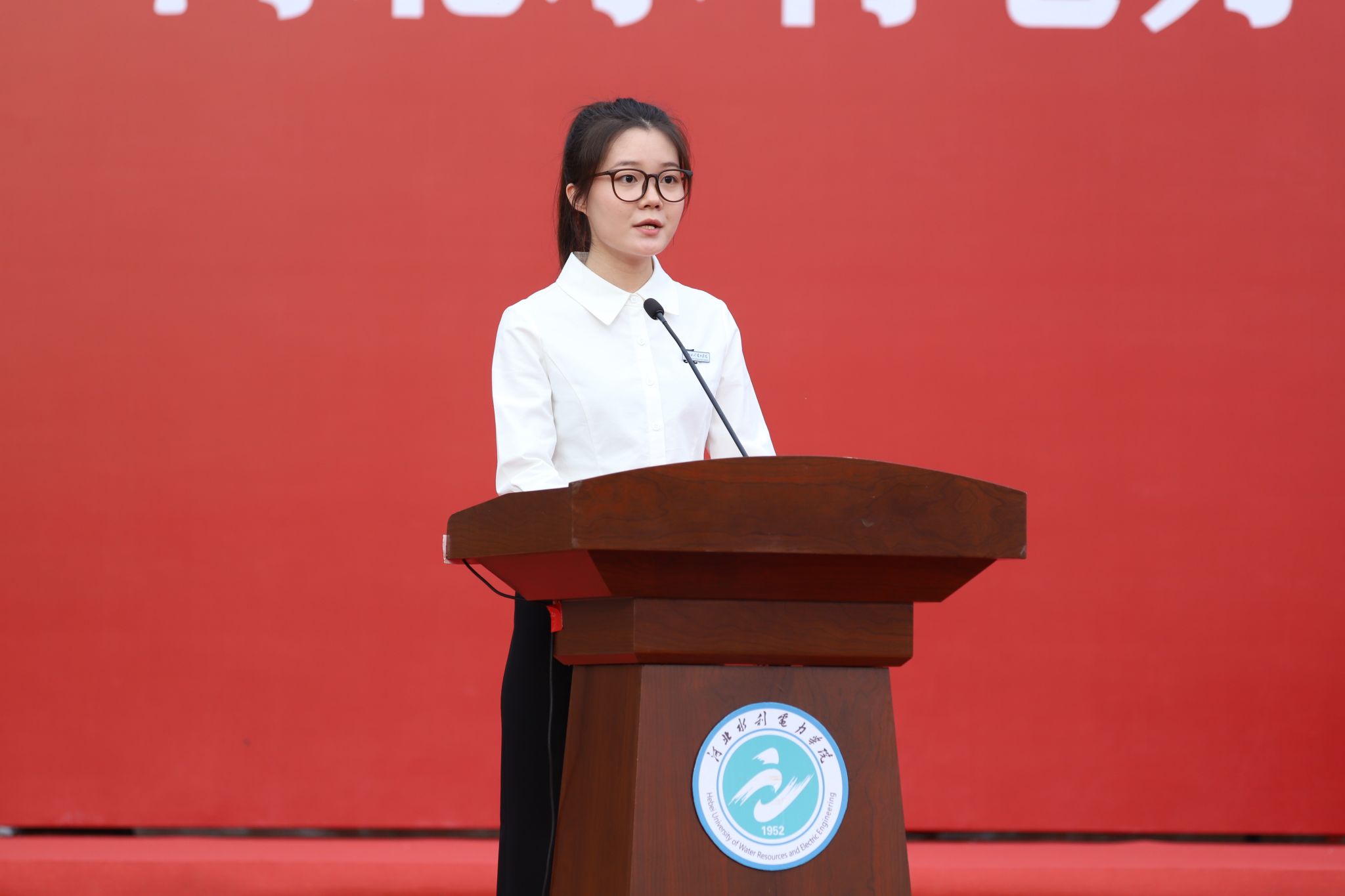 新生代表水利工程系水利水电工程202504班李家昊表达了作为新一届水院学子对大学生活的美好期待以及对未来四年生活的规划,并表示将以“水院人”的新身份矢志不渝,笃行不怠,用汗水浇灌梦想,用奋斗书写青春。