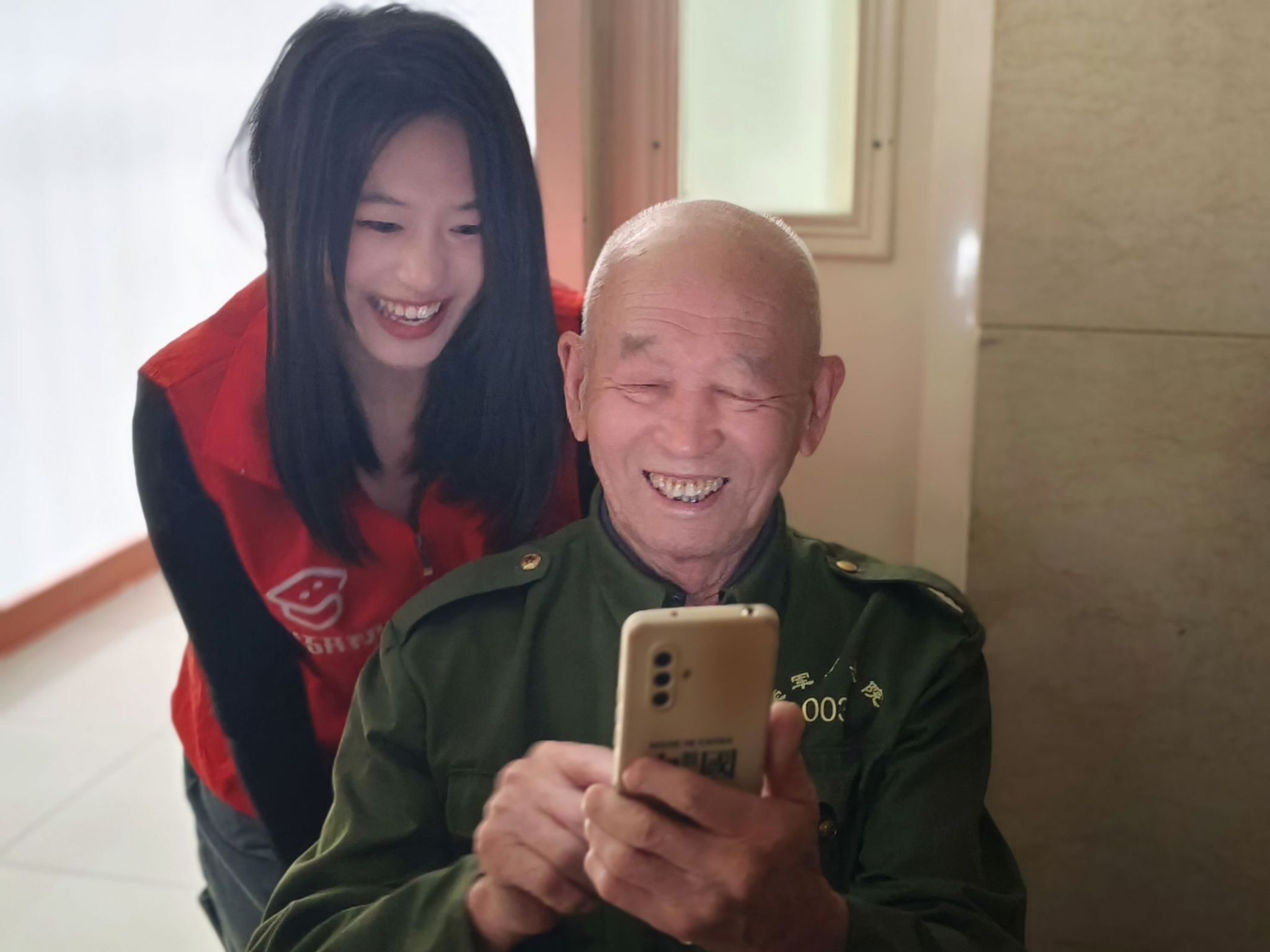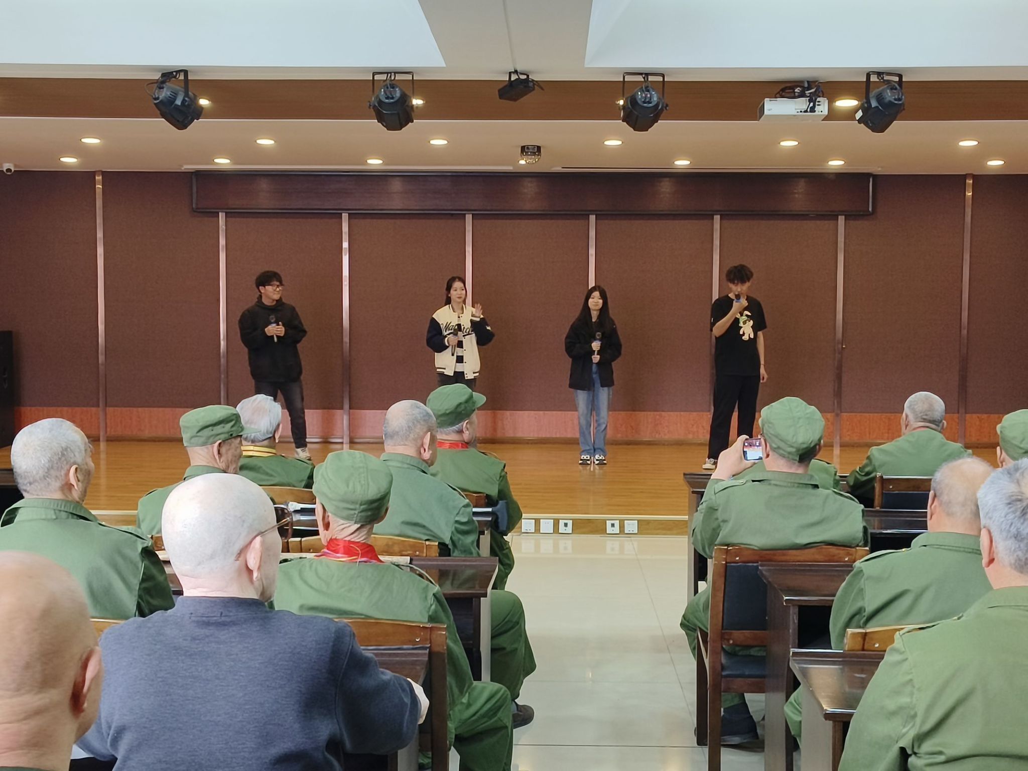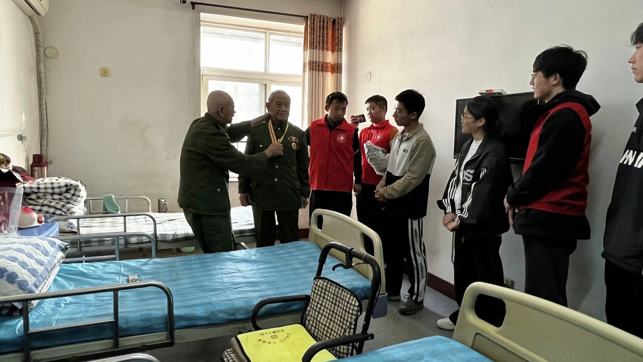 在荣军院,志愿者们用精心准备的文艺节目献上了对老兵们的敬意,美妙动听的歌曲与幽默风趣的相声引来了阵阵掌声。随后,志愿者陪伴老人们前往他们的生活场所,大家围坐在老战士身边与他们亲切交谈,耐心询问其身体情况和生活状况,倾听老战士的英雄事迹,通过这场生动的红色教育思政课,同学们更加深刻地理解了战争的残酷,也更加敬仰为国家和人民付出巨大牺牲的英雄们。活动最后,同学们与老人们不舍告别,荣军院老兵们也对新时代大学生给予了真切的嘱托和祝福。