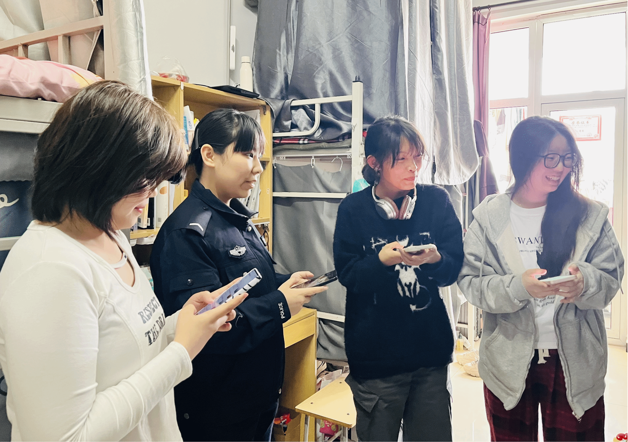 刘警官带领民警们深入学生公寓指导学生们安装注册“国家反诈中心APP”,宣传反诈知识,并通过现场互动的形式让学生们了解与自身学习生活息息相关的诈骗陷阱,指导学生们如何识别骗局。民警们还向同学们介绍了公安局长信箱的注册和使用方法,同学们可以随时通过公安局长信箱进行业务咨询、事项求助、线索举报、反映情况、建言献策。