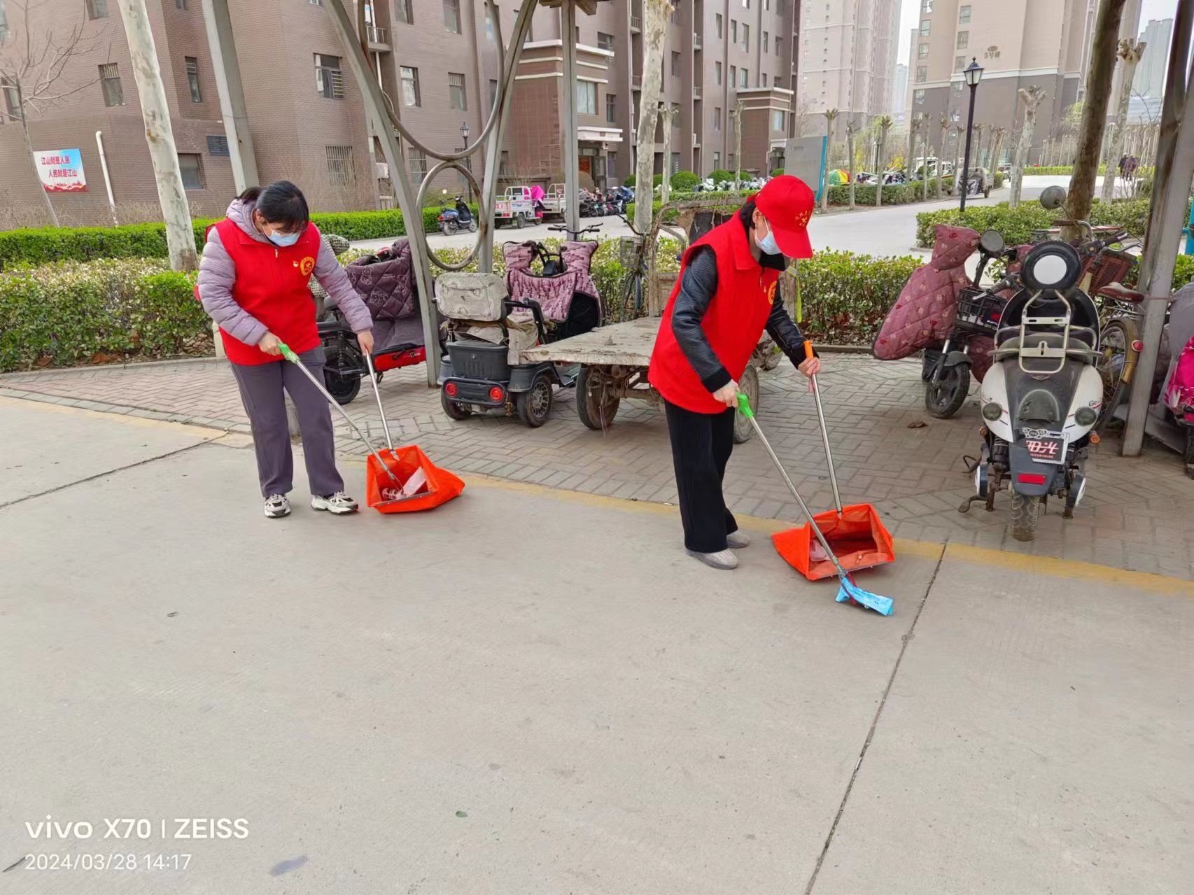 活动中,党员教师们身穿红马甲、手拿垃圾袋、分工协作,共同对凤凰城社区的各个角落进行了清扫。他们不怕脏、不怕累,认真清理了绿化带和路边散落的塑料袋、纸屑等各种杂物,并把路边的自行车、电动车等一一摆放整齐,向居民们发放《沧州市创建全国文明城市应知应会》宣传材料,面对面讲解创城知识,宣传创城重要意义,进一步提升群众对创建全国文明城市的知晓度,引导群众积极参与创城工作。