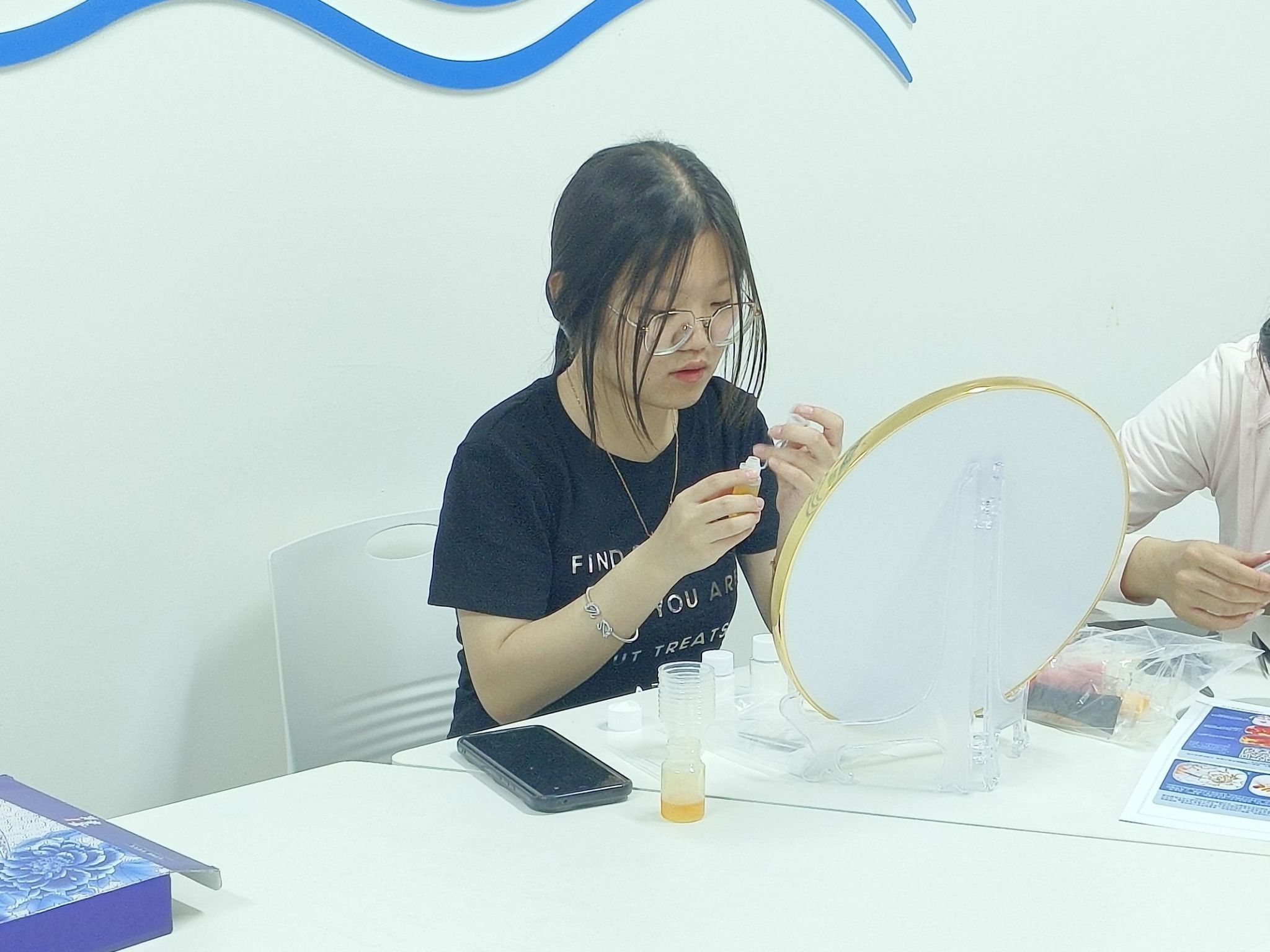 活动伊始,主持人为参赛同学宣读活动规程,并科普掐丝珐琅工艺的历史背景及发展历程,详细讲解掐丝珐琅的制作工艺及步骤。随后,参赛同学依据图案绘画、上胶、掐丝、剪丝、着色捋丝、沾丝、点蓝、填砂、淋膜,金属勾勒轮廓,彩釉填注精髓,将细腻的线条和丰富的色彩呈现出来,指尖“掐”出的“景泰蓝”给人一种视觉上的享受。珐琅画作为一门古老而精致的艺术,不仅仅是装饰品,更是承载着历史和文化的艺术珍品。