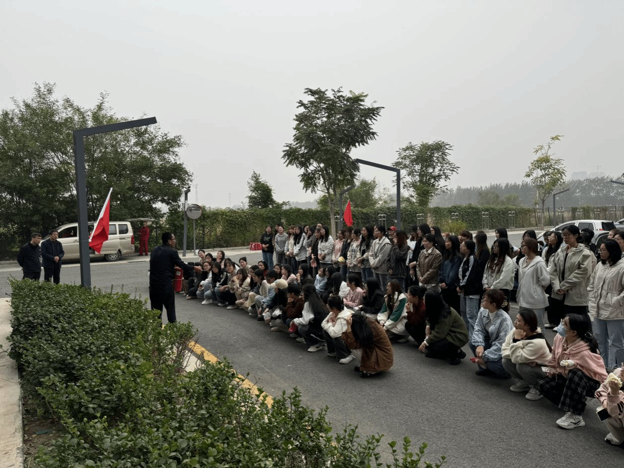 逃生疏散演练结束后,全体人员在一号公寓楼前广场开展灭火演练。首先,罗占军向同学们介绍了校园防火灭火知识,讲解了灭火器的使用方法和注意事项。随后,全体演练人员在工作人员的指导下依次上场进行了灭火演练。