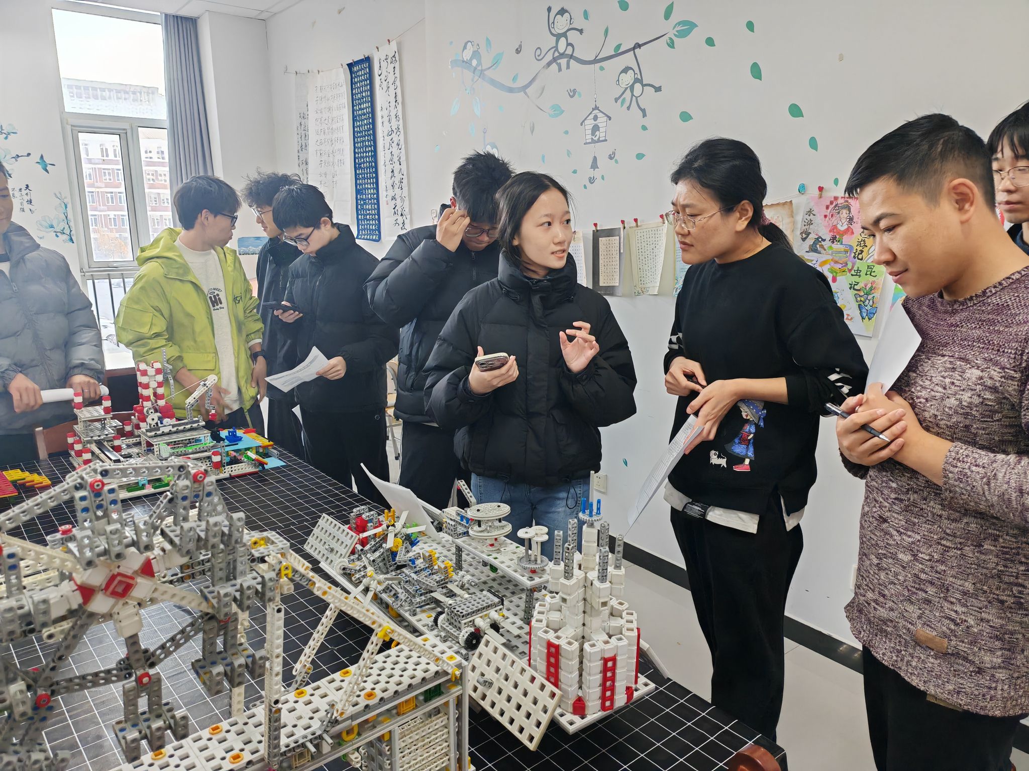 在活动中,同学们全情投入、合理分工,充分发挥想象力,将课堂知识与实践创造相统一,他们或将主板、传感器与电机等关键部件巧妙组合,再软件编程不断调试运行程序,确保智能车能够在比赛场地上稳定运行;或将合适的卯榫零件巧妙组合,与平时了解到的古今中外不同风格建筑的结构特色相融合,搭建出既符合空间构造又充满想象力的建筑模型;或将零散积木通过创意设计进行拼搭重构,结合软件编程和电机、传感器等实现创意机械动态化运行。一件件作品在同学们奇思妙想的思维风暴和灵巧的双手中组合成型,充分展现了我校学子热爱科学、勇于探索、善于创造的新时代精神风貌。最终,经过专家老师的专业评审,活动评选出多个奖项,以表彰表现突出的团队,并激励大家在今后的创新大赛中不断突破自我,争创佳绩。