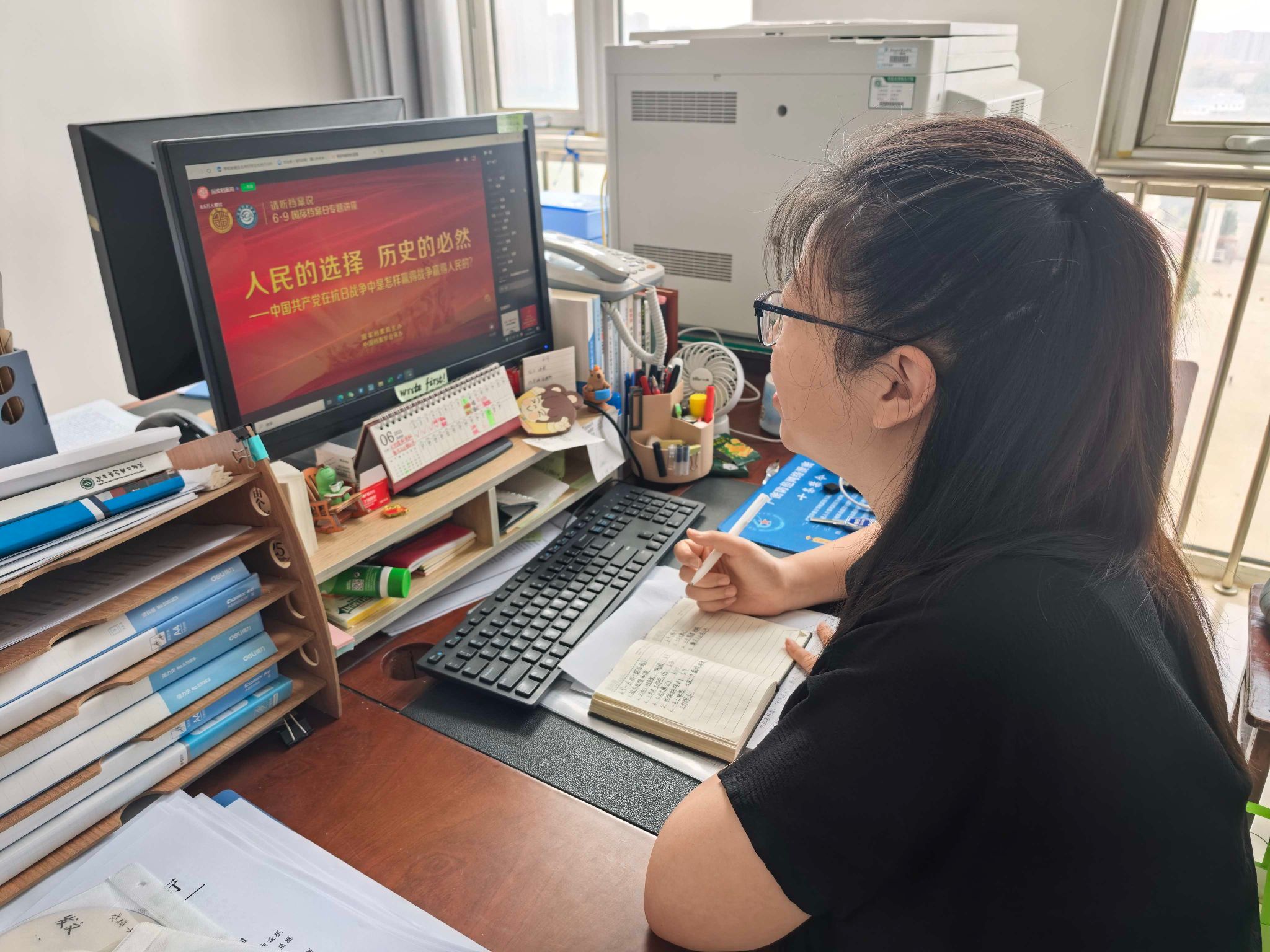 专题学习强化根基,档案队伍蓄能提效。6月9日,组织全校33名专兼职档案员,通过电脑或手机观看国家档案局“6•9”国际档案日专题讲座,进一步强化了档案工作者的历史责任感,为学校档案人才队伍建设奠定坚实的基础。