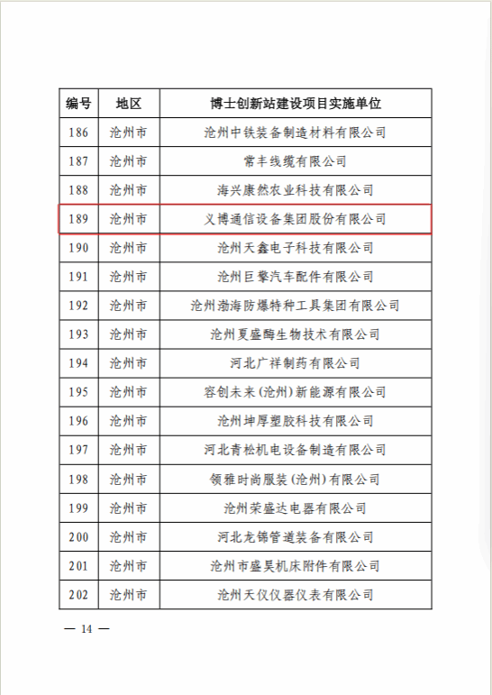 近日,河北省科学技术协会、河北省教育厅、河北省工商业联合会联合印发《关于公布2025年河北省博士创新站建设项目认定结果的通知》,我校电气自动化系与义博通信设备集团股份有限公司联合申报的河北省博士创新站建设项目成功获批。该创新站主要由电气自动化系姚宁博士领衔的多学科博硕团队及企业高新技术人员共同构成。